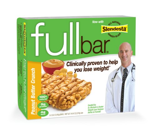 Savor the sweet, slightly salty taste of peanut butter and real peanuts. Treat yourself to a smooth taste and crispy crunch while taking advantage of the dual-action fullness found in Fullbar helping you to feel full, eat less and lose weight. Delicious, nutritious, and clinically proven to help you lose weight, Fullbar with all-natural Slendesta is your solution to lose weight and keep it off. Created by a leading weight-loss surgeon, Dr. Michael A. Snyder, Fullbar offers a solution that is simple and sustainable. Simply enjoy a delicious Fullbar as a snack or before lunch and dinner with a 16-ounce glass of water to induce fullness causing you to eat less of your regular meal. Eat what you love, just less of it. It’s that simple. Eat 2 bars a day for optimal results.You will not be disappointed with
